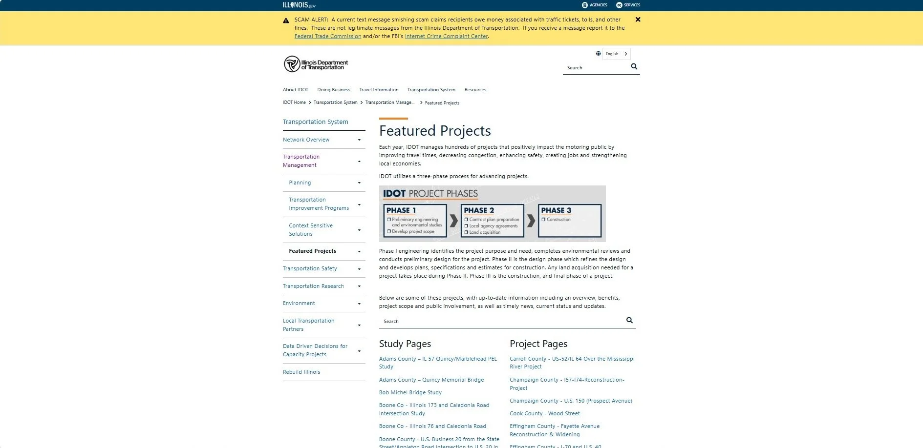 When I joined IDOT, the website had hundreds of static pages built over time by multiple content teams with inconsistent structure and design patterns. Citizens, contractors, and businesses often struggled to find critical information like project updates, permits, or safety resources.